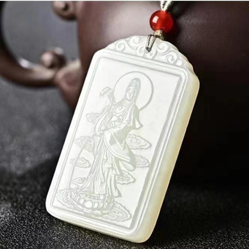 Pendant Green and White Guanyin Brand Square Solution Necklace