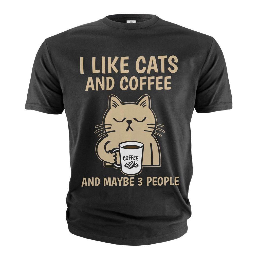 Funny Coffee and Cats T-shirt I like cats coffee and maybe 3 people shirt