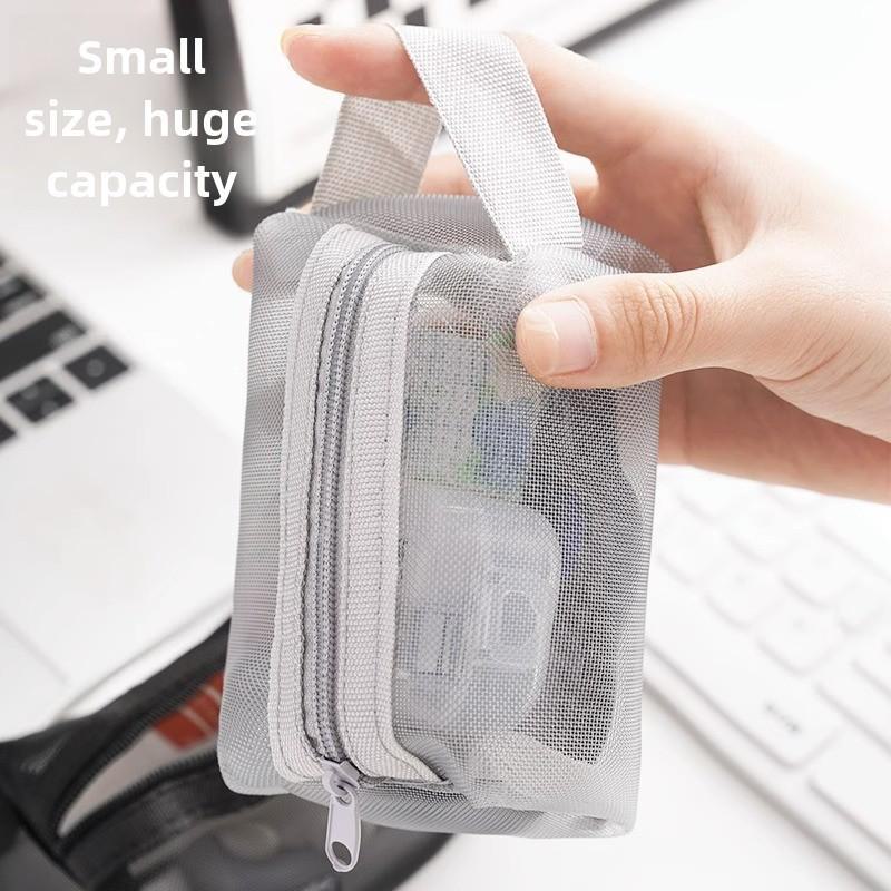 1Pc New Mini Transparent Mesh Storage Bag for Coins, Keys, and Lipstick with Zipper and Large Capacity
