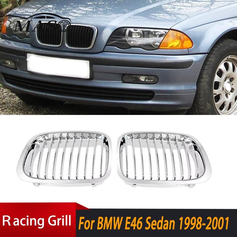 Chrome Car Front Bumper Kidney Grill Racing Grille Single Slat for BMW E46 4 Door Sedan 1998 1999 2000 2001