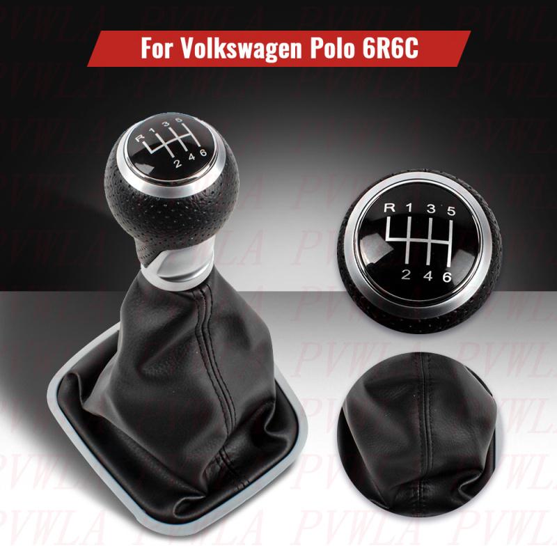 For VW Polo 6R 6C Sedan Hatchback 2011 2012 2013 2014 2015 2016 2017 6 Speed Gear Stick Shift Knob+ Black Line PU Leather Boot
