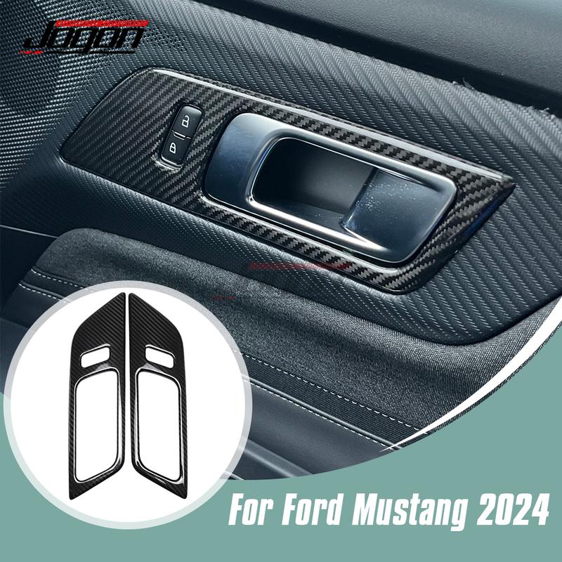 2PCS Carbon Fiber Car Interior Window Side Door Handle Panel Cover Trim For Ford Mustang S650 GT Ecoboost Dark Horse 2024 2025