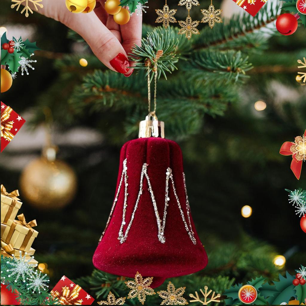 Velvet Christmas Ornaments 2PCS Red Flocked Christmas Ornaments Flocked Painted Candy Cane Bow Bell Decor Holiday Scene Decor