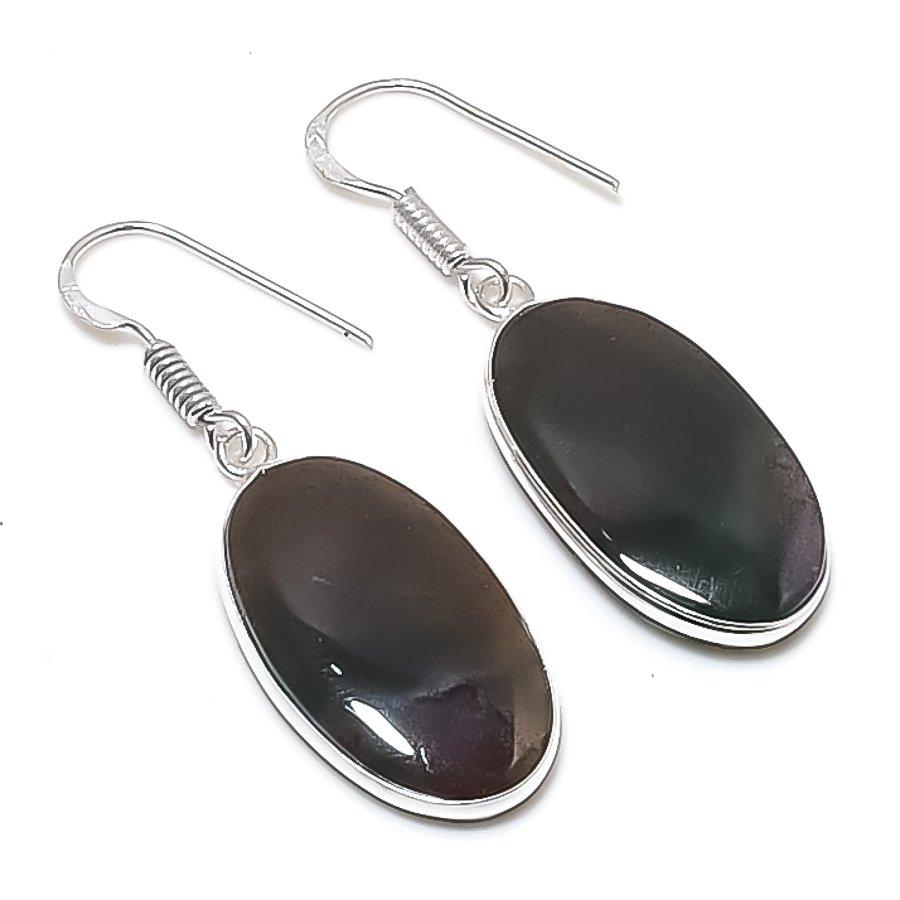 Natural Silversheen Obsidian 925 Sterling Silver Jewelry Earring 1.73" AEE-10683