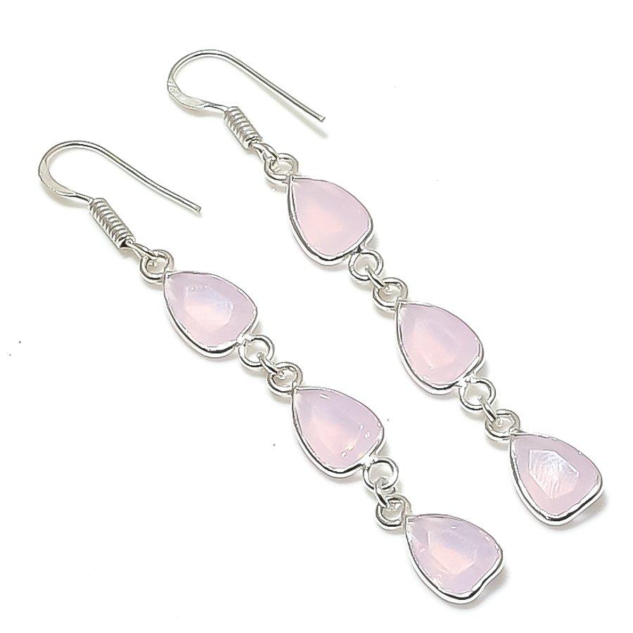Natural Pink Chalcedony Gemstone 925 Sterling Silver Jewelry Earring 2.64" AEE-11260