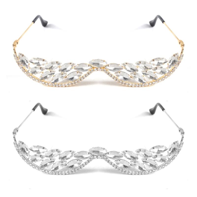 Half Frame Rhinestones Glasses Face Jewelry Crystal Eyeglasses Without Lens V Shape Rhinestones Sunglasses for Women Men