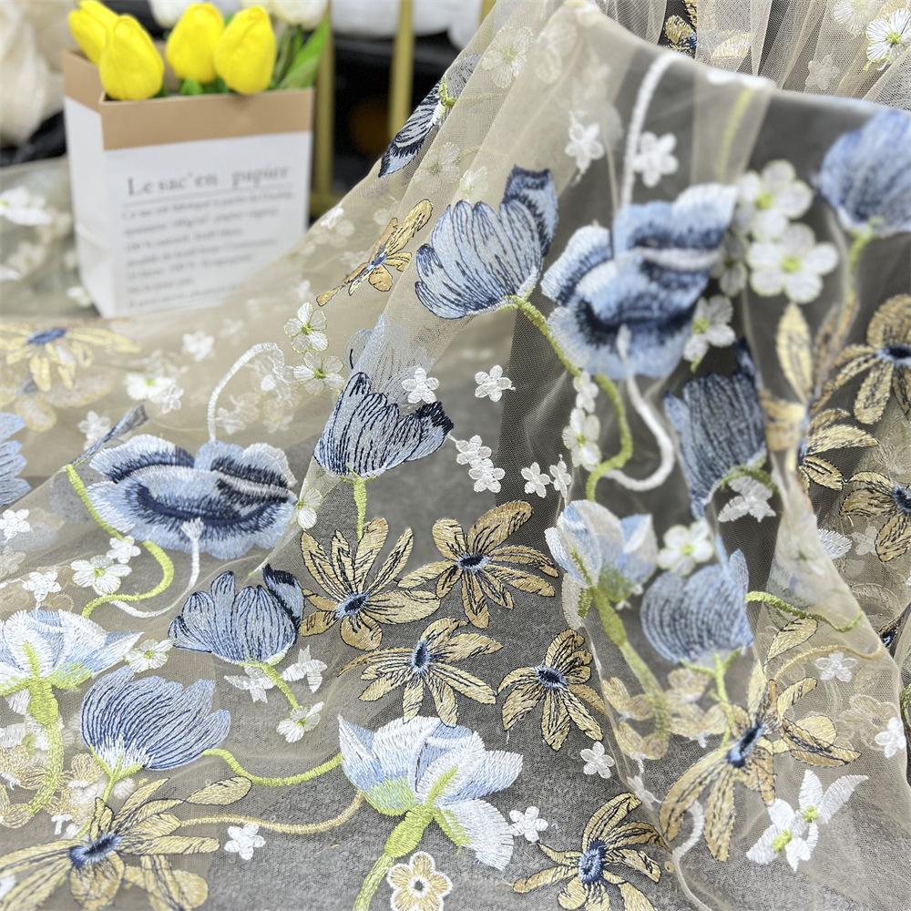 1/3/5yards Flower Embroidery Fabric Soft Tulle Nigerian Lace Fabrics Bridal Wedding Dress Cheongsam Prom Dress Applique Crafts