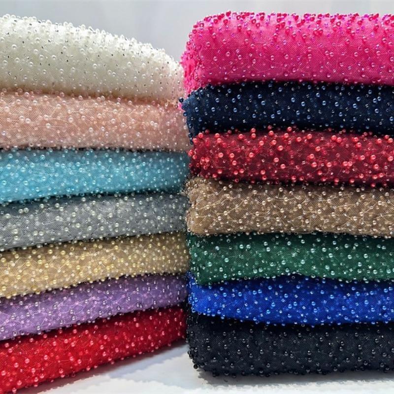 1yard Sequin Embroidery Fabric for Wedding Dress DIY Sewing Elegant Embroidered Beaded Lace Fabric Glitter Evening Dress Cloth