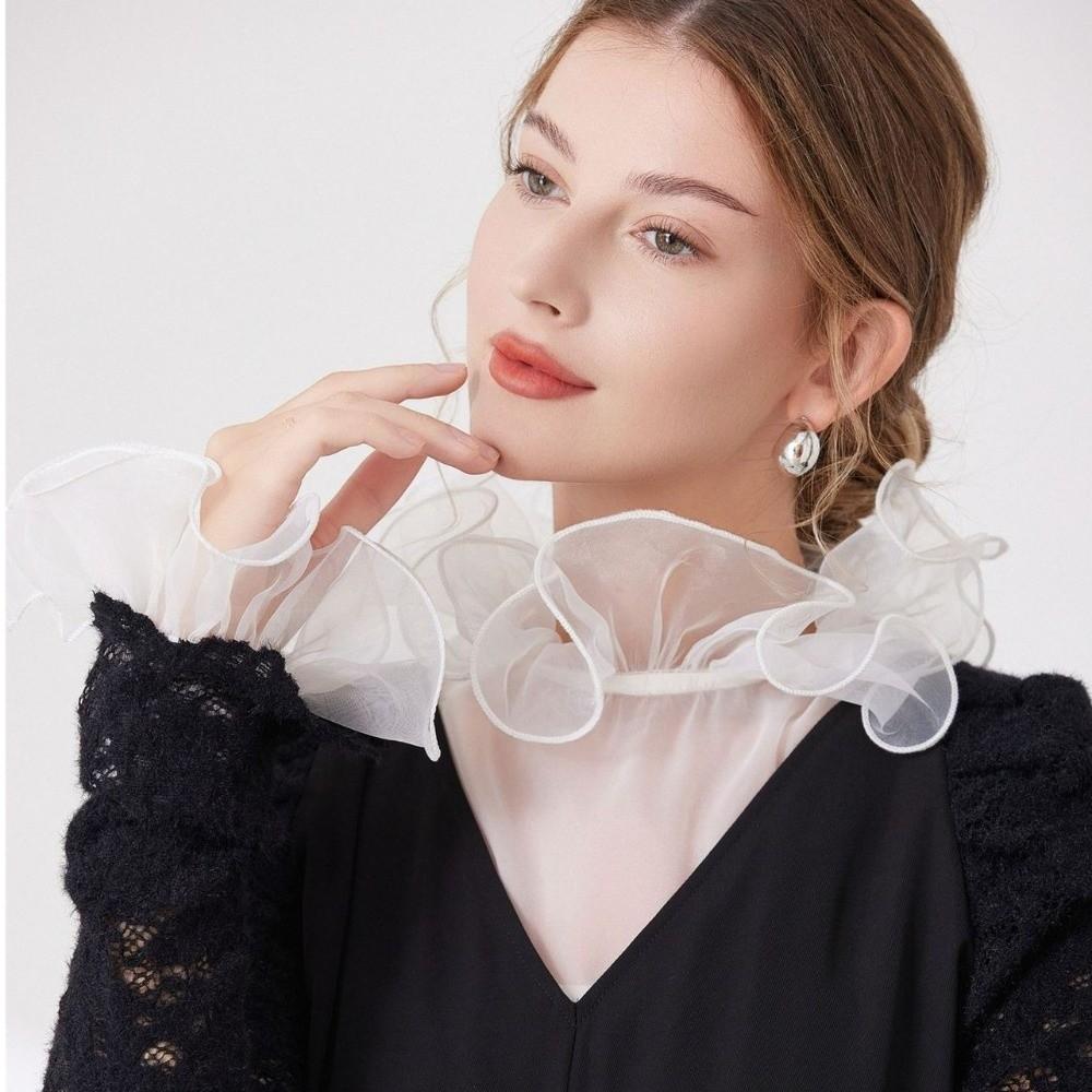 Polyester Trim False Collar Ruffle Design Breathable Detachable Collar Lace Trimmed Matching Arm Cuffs Half Shirts