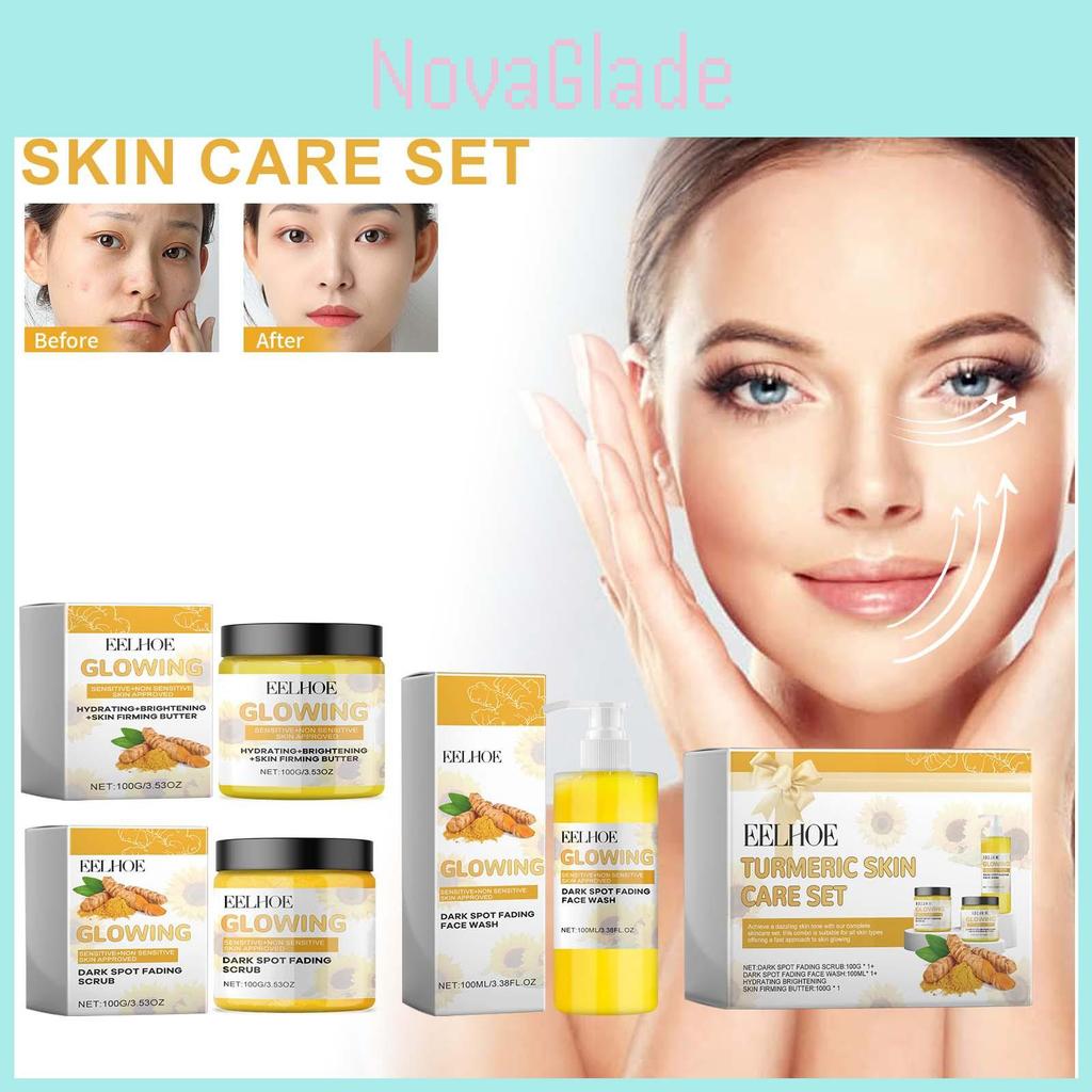 Eelhoe Turmeric Skincare Set For Brightening And Hydrating With Cleansing Exfoliating Creams