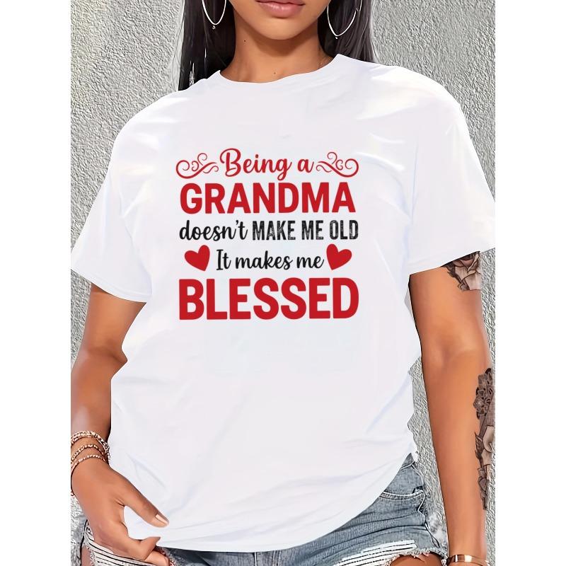 European Size Women'S Short Sleeve T-Shirt | "Being A Grandma Makes Me Blessed" Graphic Tee, Casual Round Neck Summer Top, Perfect Mother'S Day Gift