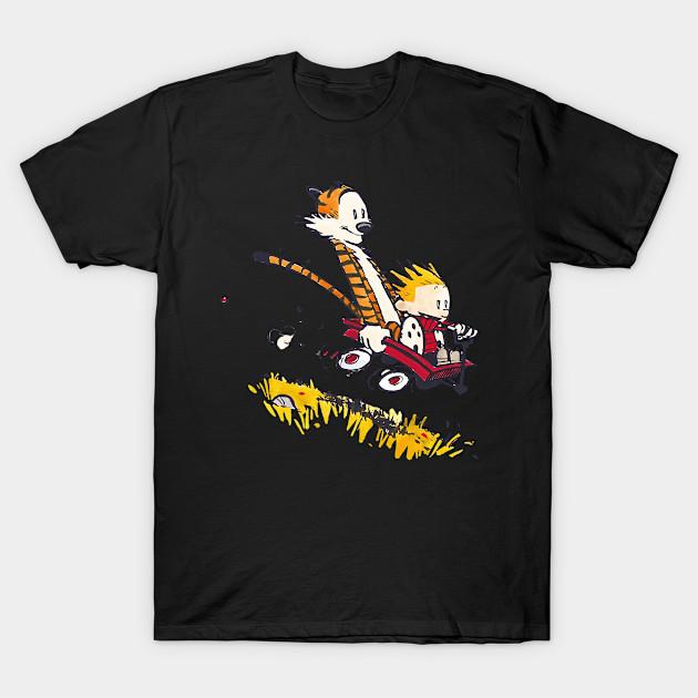 Men Black Print T-shirt Calvin And Hobbes Speed No-Cut Transfer Paper Print Cotton Tshirt