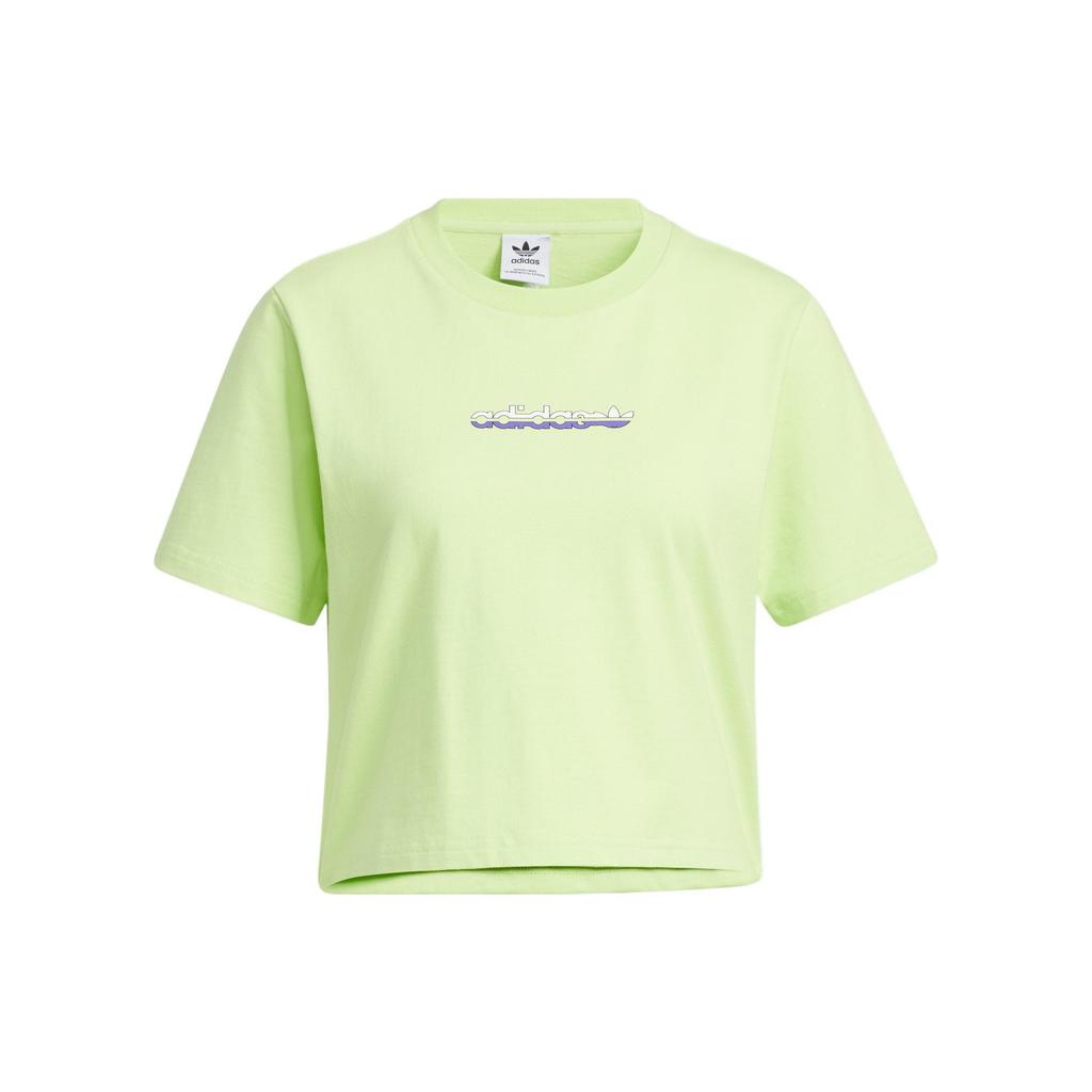 Adidas Originals Solid Logo Print Short Sleeve Crew Neck T-Shirt Women Tops Lime-Green HP0100