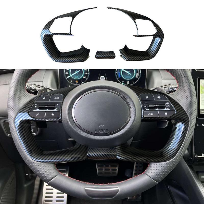 3pc Carbon fiber color Steering Wheel Cover Trim Fit for Hyundai Santa Cruz Tucson Elantra