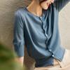 Round Neck Short-sleeved Cardigan for Women In Summer Latest One Tone Puff Sleeve Top French Exterior Half-sleeved Thin Blouse