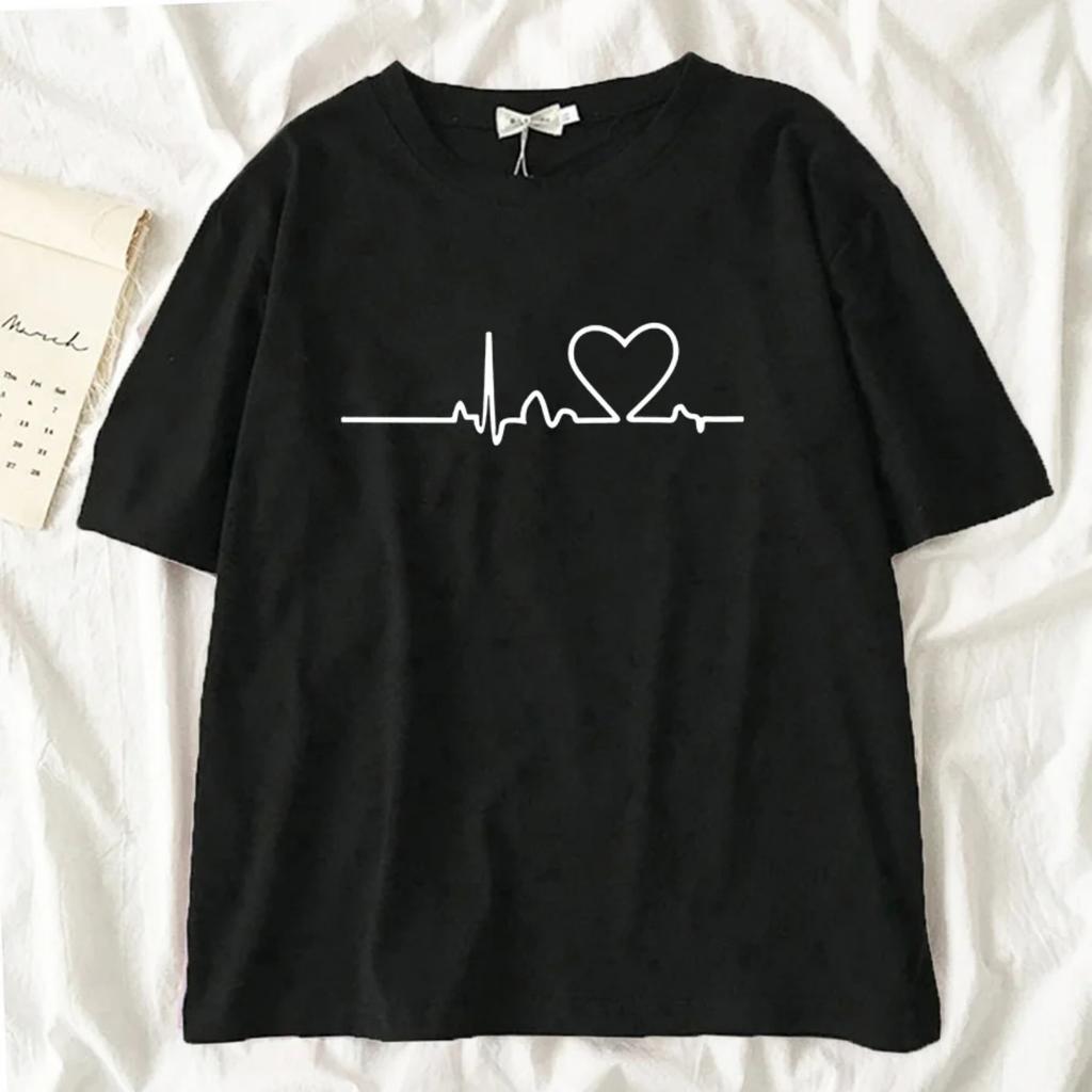 Heartbeat Women Black T Shirt 2022 Girl Harajuku 90S Korean Style Graphic Tops Female Y2K Kawaii Lady T-shirt,Drop Ship