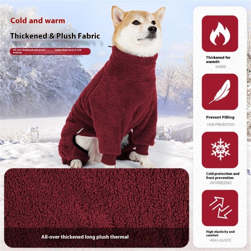 Full Body Dog Winter Coat With Double Side Plush Fleece Four Leg Dog Outfit Coldproof Winter Pajamas for Indoor Outdoor