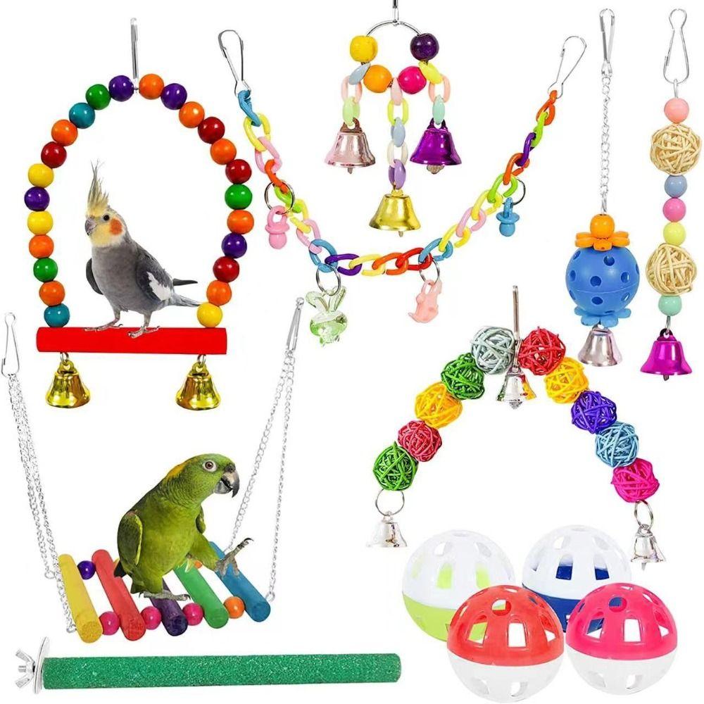 A Set High Quality Colorful Cockatiel Toys Durable Interactive Bird Cage Accessories Wooden Bird Toy Set Training
