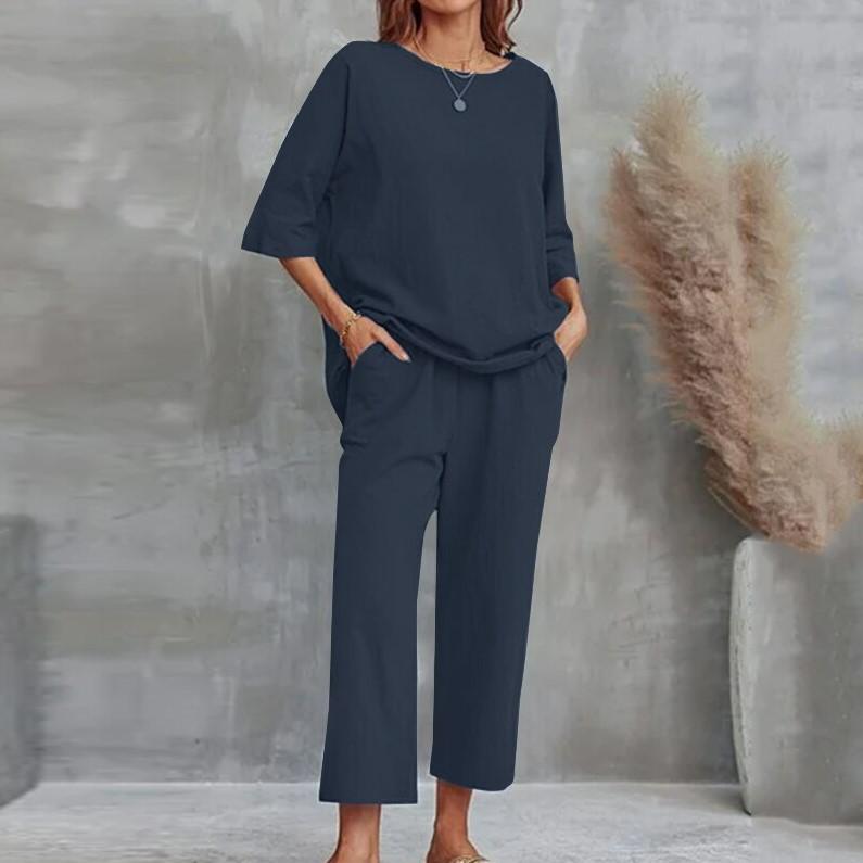 Summer 2024 European & American Women's Cotton Linen Two-Piece Casual Loose Suit