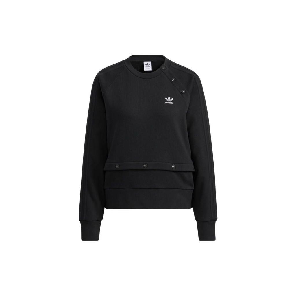 Adidas Originals Solid Logo Print Casual Sports Long Sleeve Sweatshirt Women sweatshirt Black HH9457