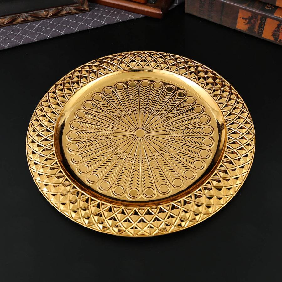 Light luxury round tray fruit plate European retro fruit plate afternoon tea cake plate hotel banquet decorative plate restaurant plate