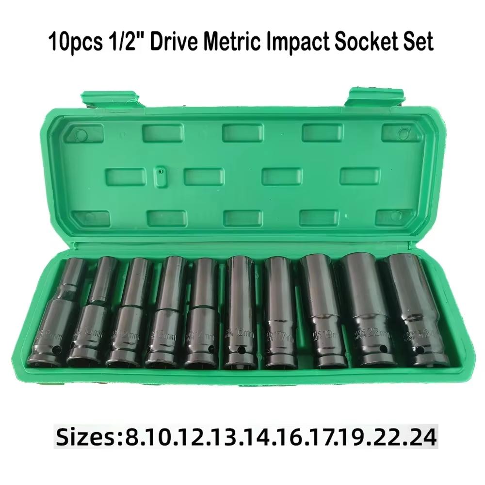 Socket wrench set, universal socket wrench set, deep-slot socket wrench set, pneumatic maintenance tool wrench 10-piece set