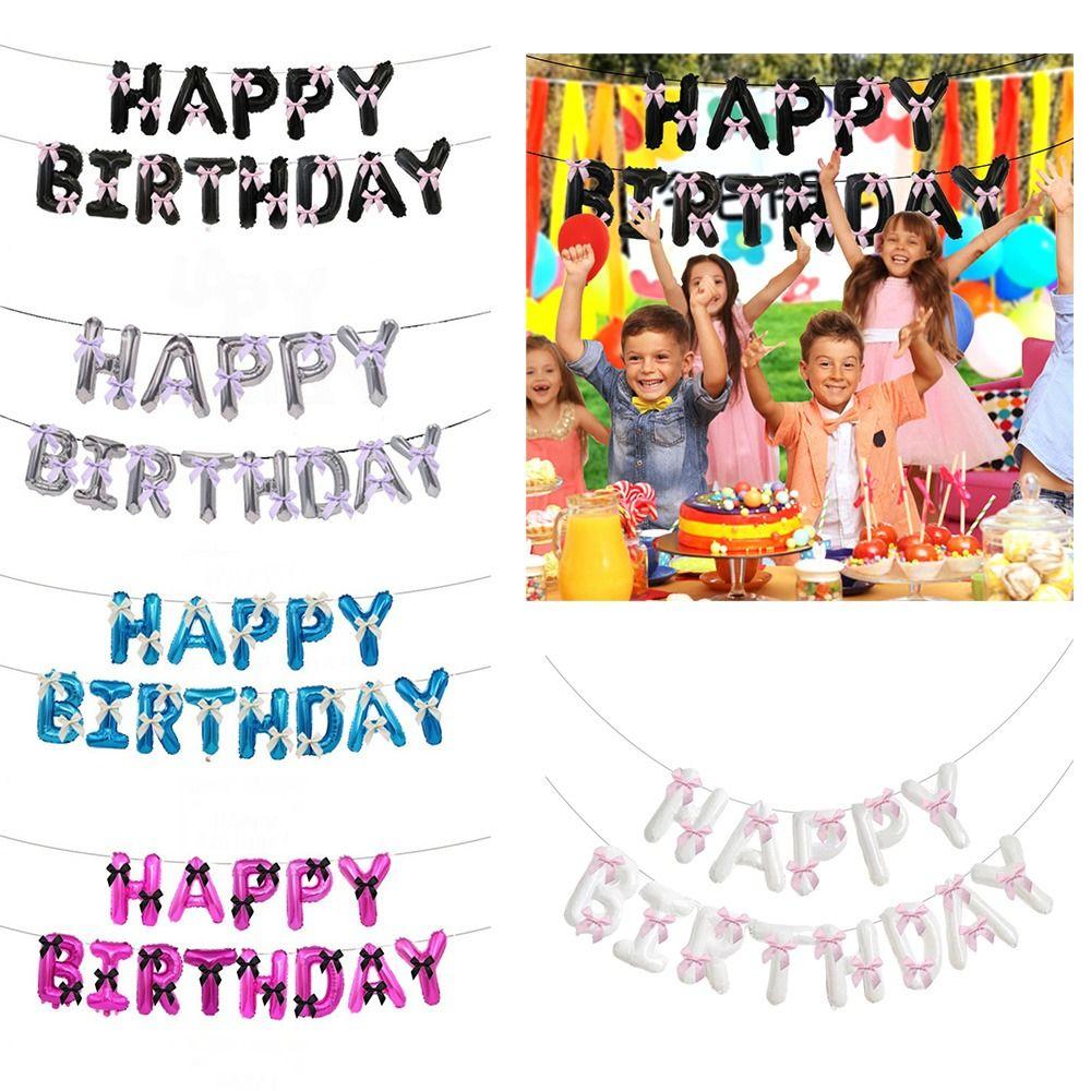 16 inch Happy Birthday Balloons Bow Ribbon Birthday Party Decoration Letter Balloons Balloon Set Aluminum Foil Balloons Party