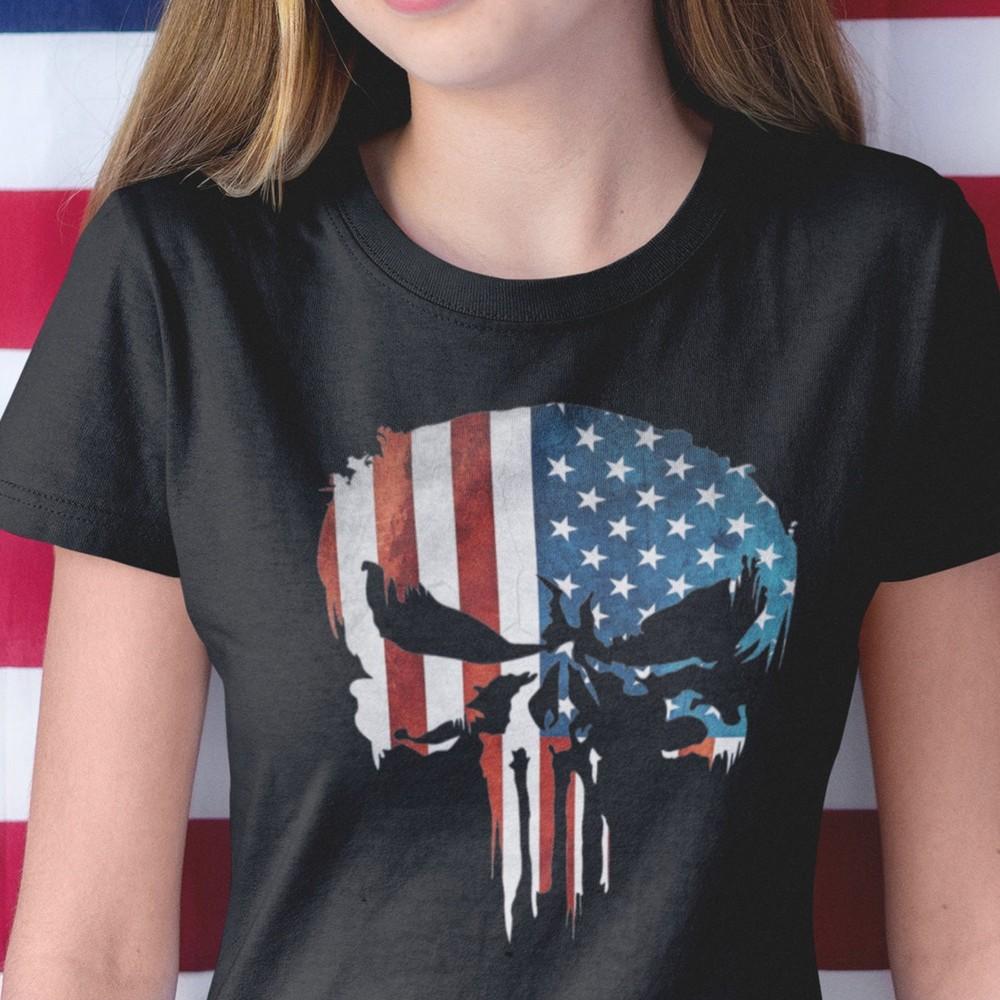26 Patriotic Skull T Shirt, USA Flag Tee, Skeleton Head, Independence Day, Gift Unisex T-Shirt