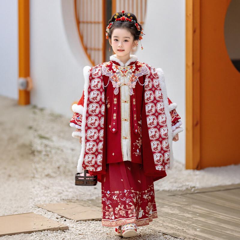 Girls' Chinese Style Embroidered Hanfu Winter Cloak