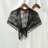 Women Lace Triangle Scarf With Tassel Embroidered Solid Color Shawls Veil Fashion Lightweight Prayer Hijab 160*50Cm