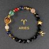 1PC Cosmic Planet Beaded Twelve Constellation Bracelet, Black Stone Twelve Constellation Beaded Bracelet