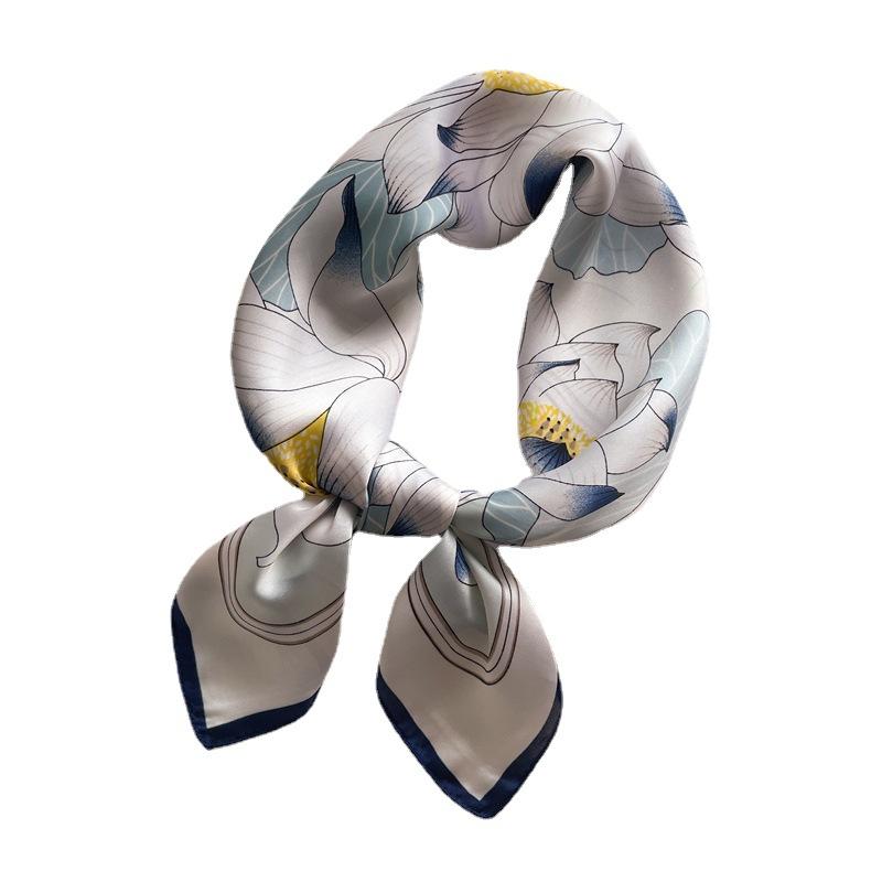 68Cm Lotus Pattern Square Scarf Women Simulated Silk Plant Print Versatile Headwear Clothing And Accessories Square Scarf