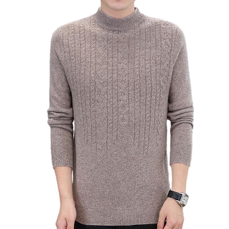 ROMON Men's 100% Pure Wool Cable Knit Mock Neck Sweater