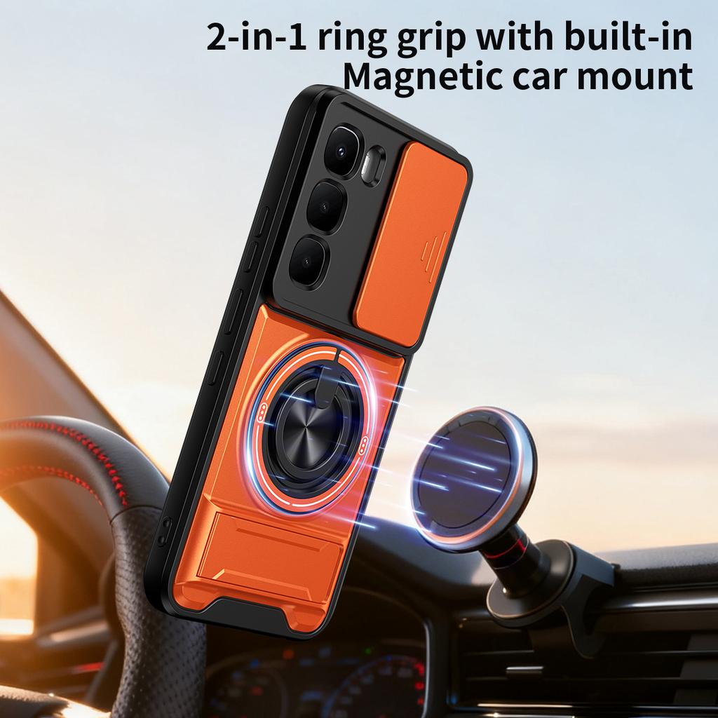 For Infinix Hot 60 Pro 4G Magnetic Case Ring Holder Foldable Kickstand TPU PC Phone Cover with Camera Lens Slider