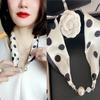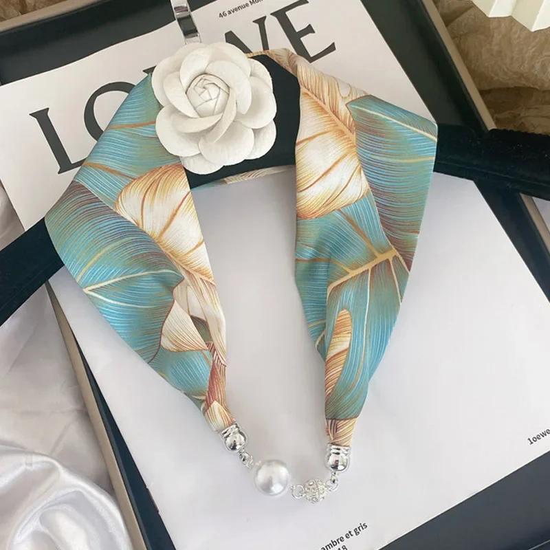 Luxury Design Magnetic Button Summer Silk Scarf Women Magnetic Pearl Necklace Scarves High End Matching Shirt Scarf Lady