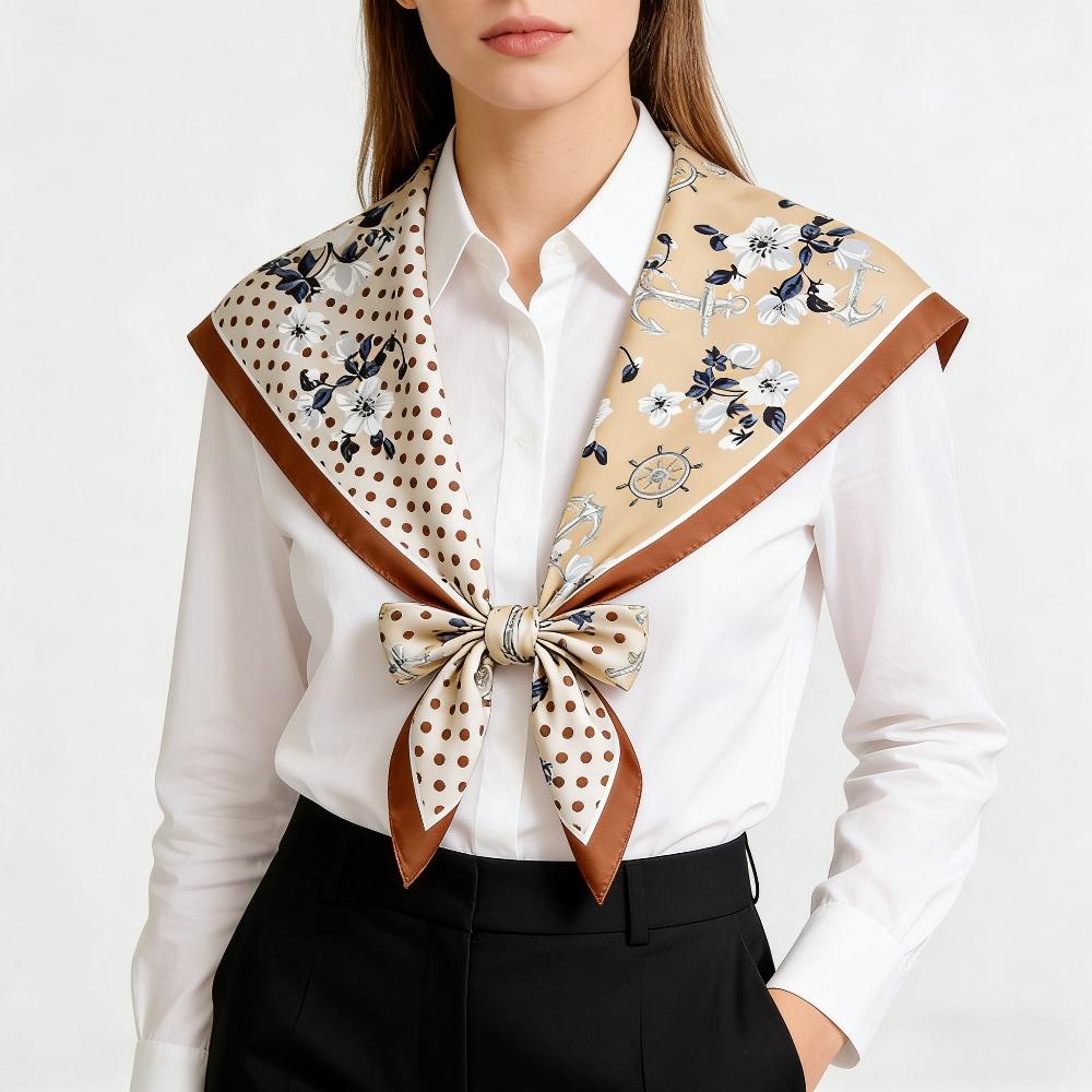 Japanese And Korean Polka Dot Color Blocking Sweet Silk Scarf Summer New Multi-Functional Decoration Small Square Scarf