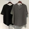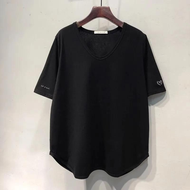 Women's Black Oversized Short Sleeve T-Shirt Side Heart Detail Curved Hem Casual Loose Top