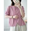 French Striped Short Sleeve Shirt Women New Small Short Top Loose Retro Cardigan