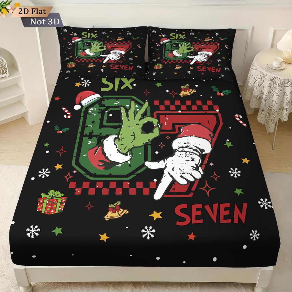 3pcs Merry Christmas 67 Element Black Printed Coreless Bed Sheet Set Multi Size Soft Bed Cover Bedroom Bedding Decoration
