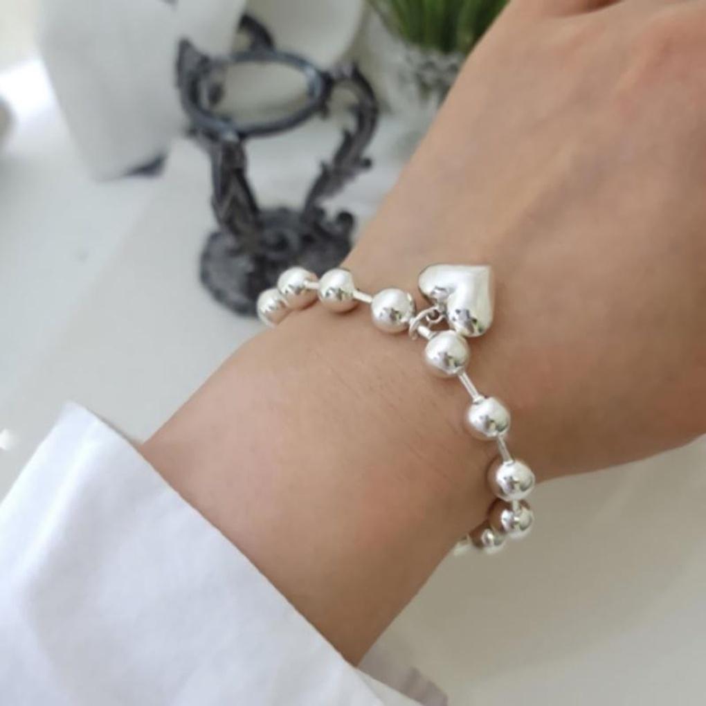 Women's Silver 925 Big Ball Volume Heart Point Bracelet