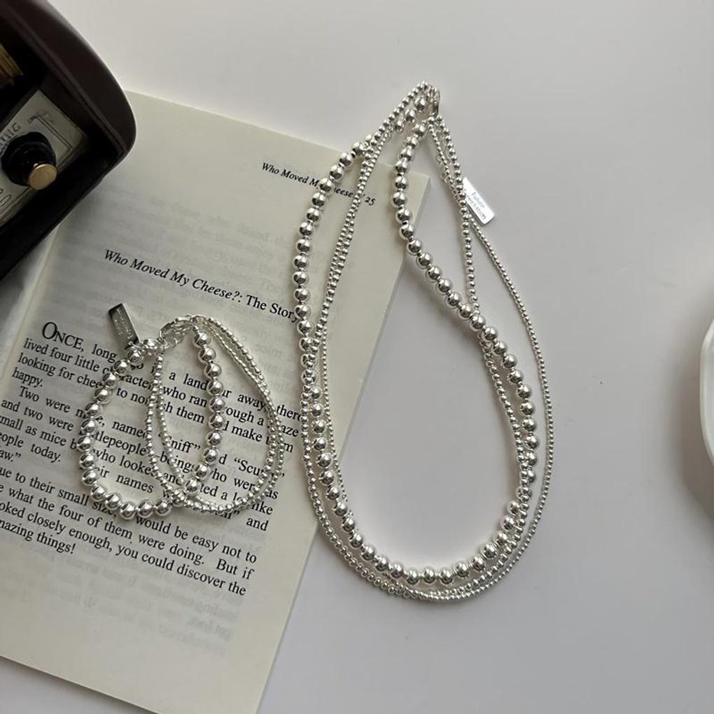 Women's Silver 925 Bead Twist Layered Necklace Bracelet