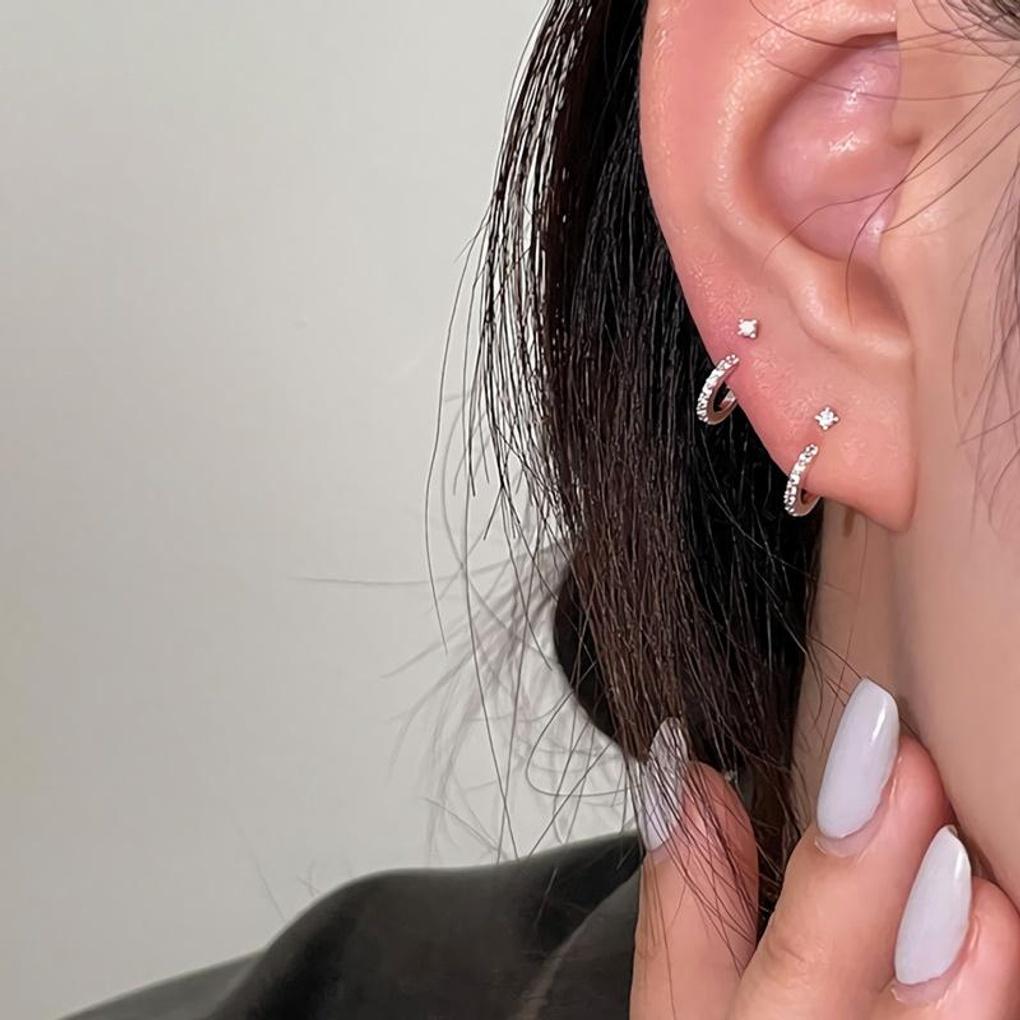 Women's 925 Silver Cubic C-Line Minimalist Earrings