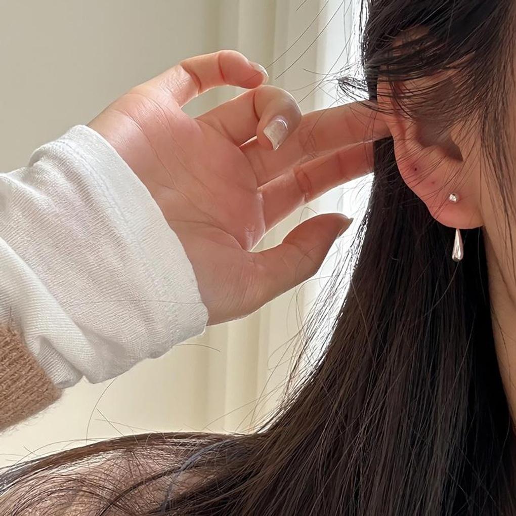 Women's Silver 999 Drop Water Drop Screw Earrings
