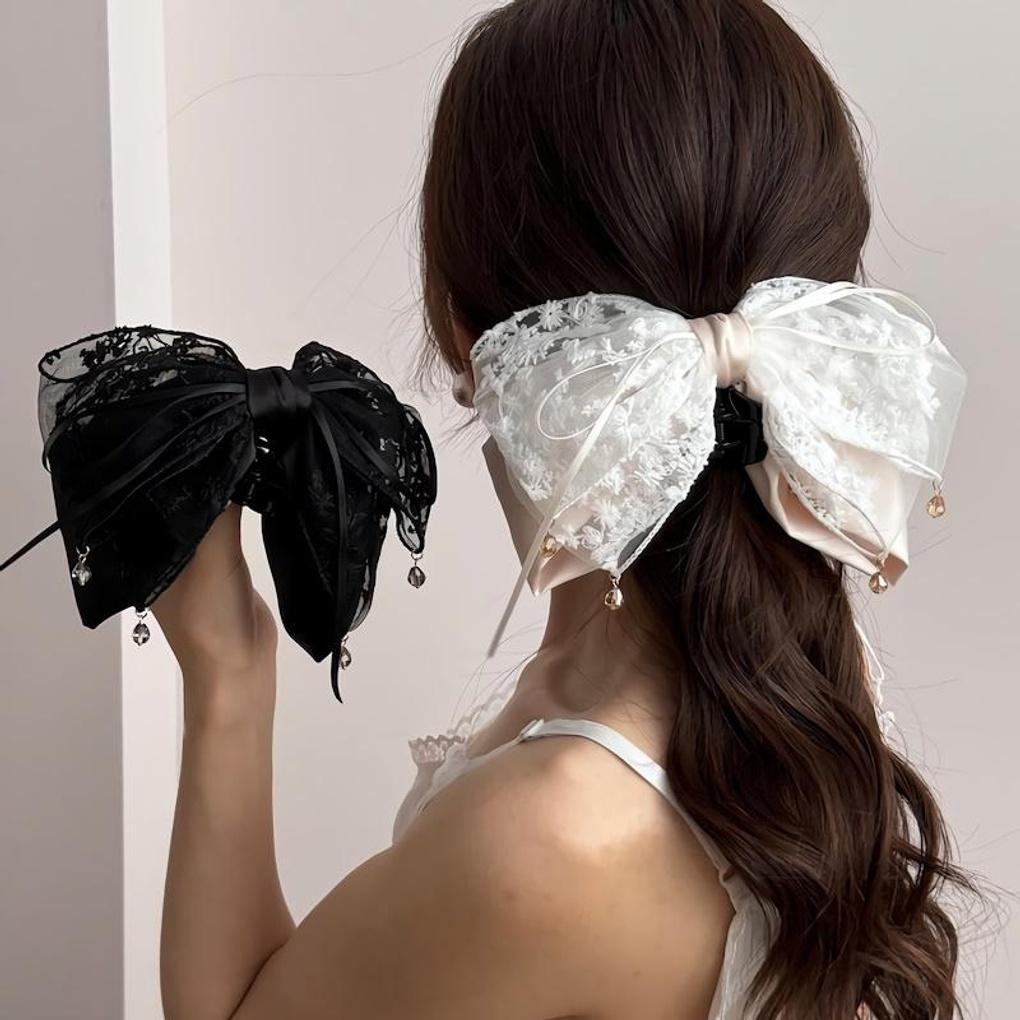 Women's Lace Ribbon Half-Bow Net Hairpin Clip