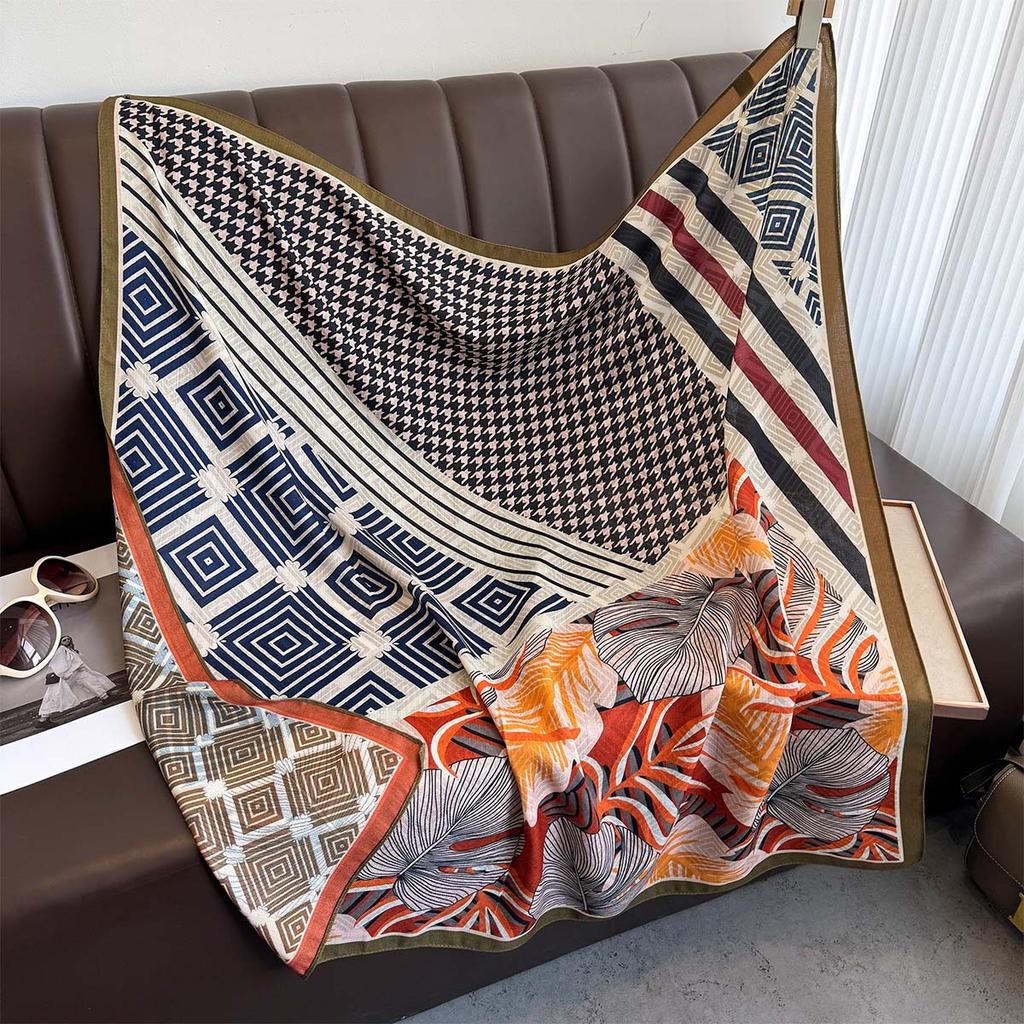 90*90Cm Retro Printed Square Scarf Women Imitation Silk Scarves Bandanas Luxury Travel Shawl Wraps Elegant Hijab Neckerchief