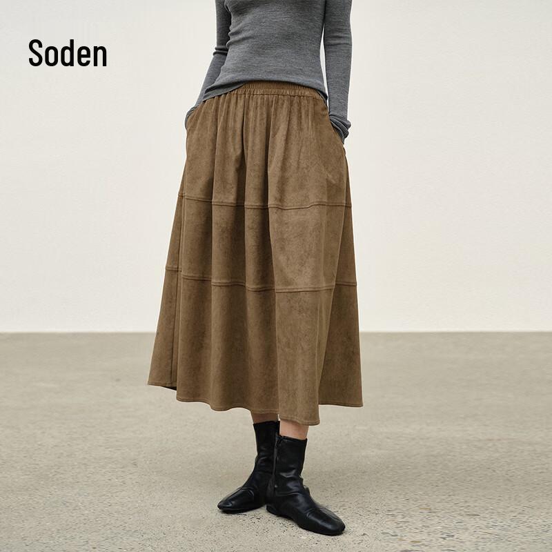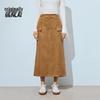 WHIteALLUSION Maillard Faux Suede High-Waist A-Line Skirt