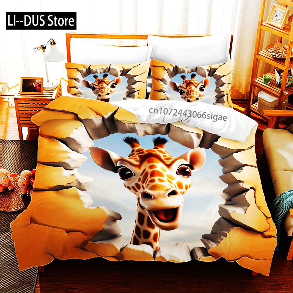3D Giraffe Print Duvet Cover Set With Pillowcase Animal ThemeAll-Season Bedding Polyester Fabric Machine Washable Digital Print