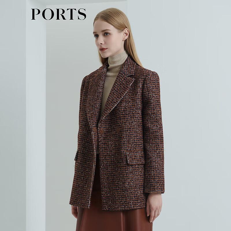 PORTS Women's Elegant Plaid Long Sleeve Short Coat