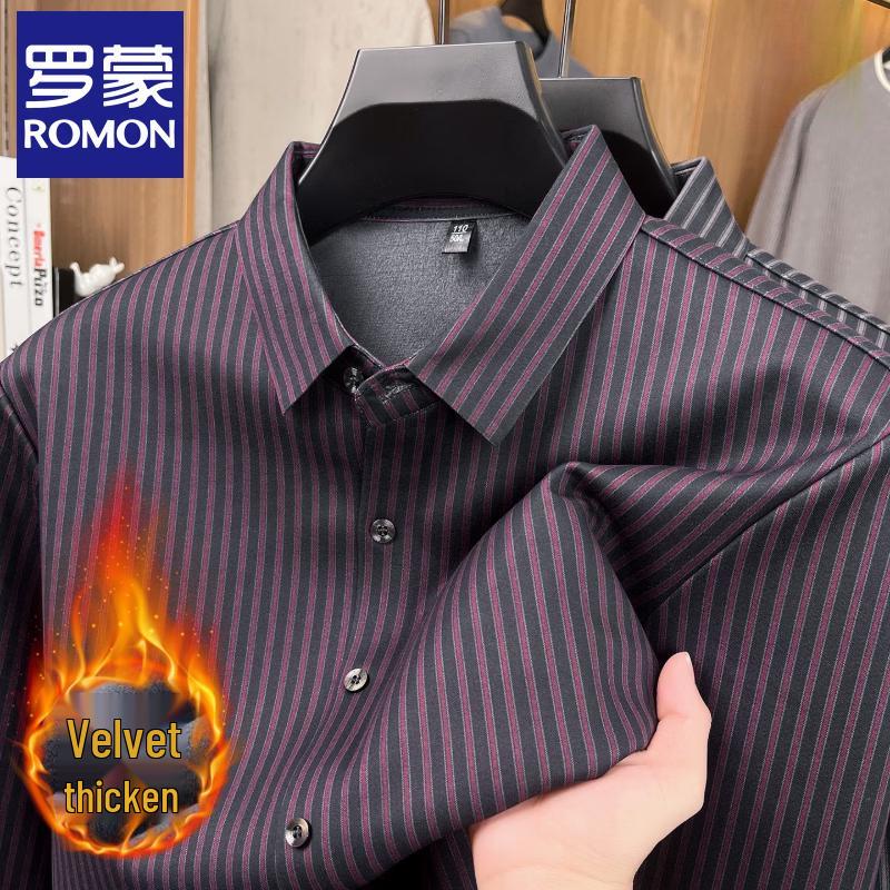 Romon Men's Winter Warm Striped Lined Shirt