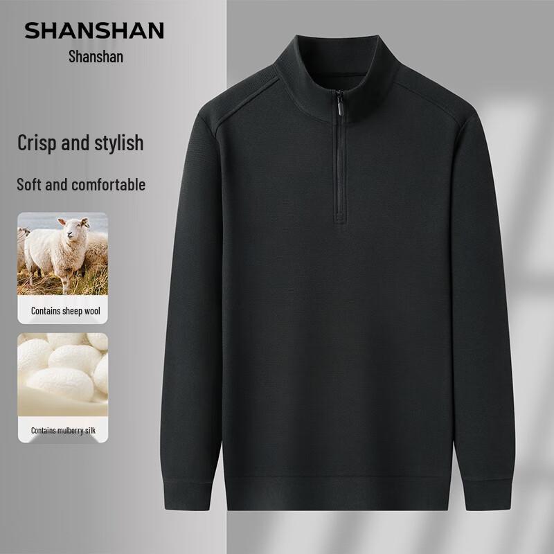 SHANSHAN Men's Autumn Long-Sleeve Merino Blend Polo T-Shirt